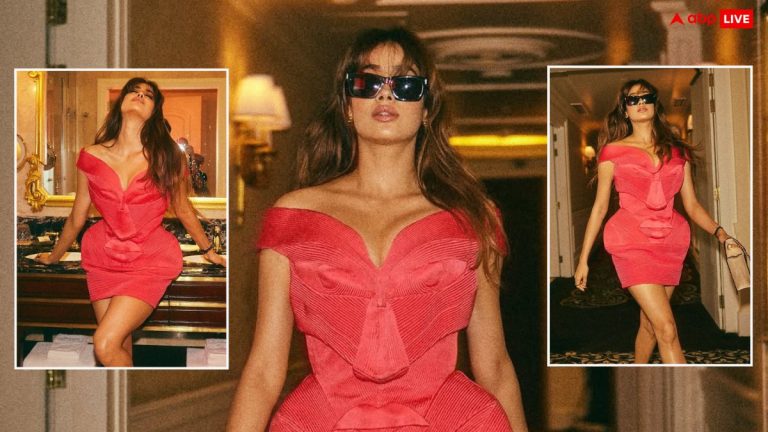 डीपनेक शॉर्ट ड्रेस में लाल परी बनकर इठलाईं जाह्नवी कपूर, तस्वीरों में फ्लॉन्ट किया न्यू हेयर कट