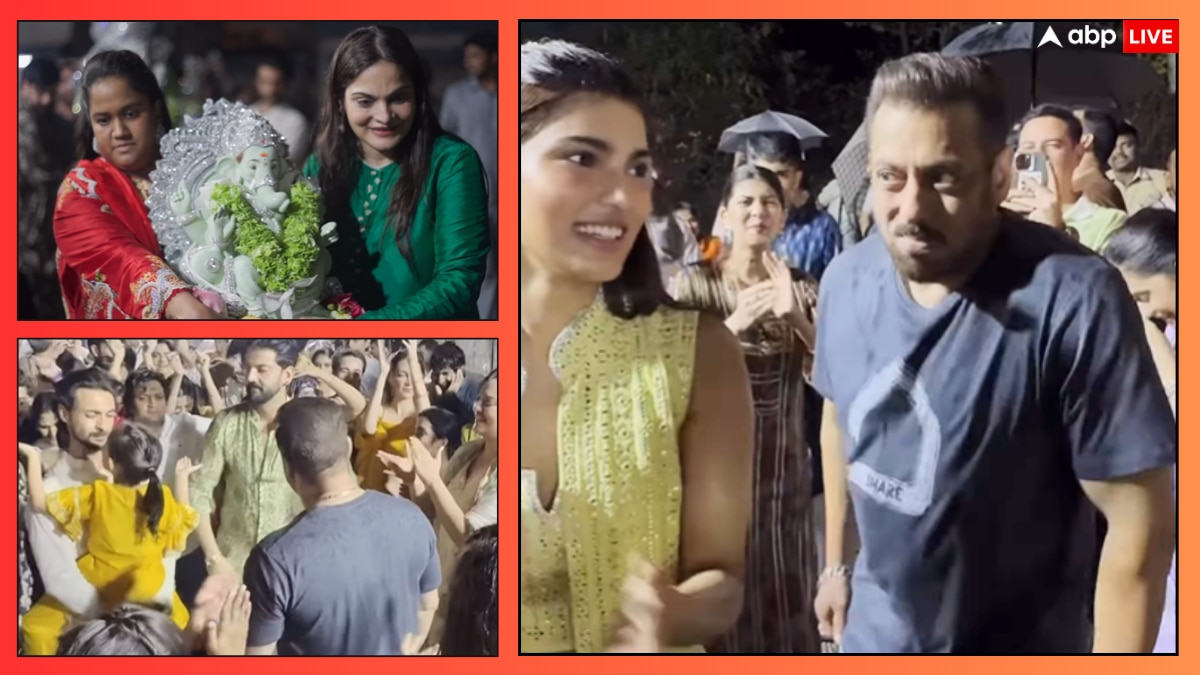 <p style=”text-align: justify;”><strong>ढोल-नगाड़ों पर नाचे सलमान खान<br /></strong>वीडियो में सलमान खान अपनी बहन और भांजी अलीजा के साथ जमकर डांस करते दिखाई देते हैं. वो अपनी भांजी को गोद में लेकर नाचते भी नजर आए. एक्ट्रेस सोनाक्षी सिन्हा अपने पति जहीर इकबाल के साथ इस मौके पर मौजूद रहीं. पूरी खान फैमिली ढोल-नगाड़ों पर झूमती दिखी और फिर मिलकर बप्पा को विसर्जित किया. वीडियो शेयर करते हुए सलमान खान ने कैप्शन में लिखा- ‘गणपति बप्पा मोरया.'</p>